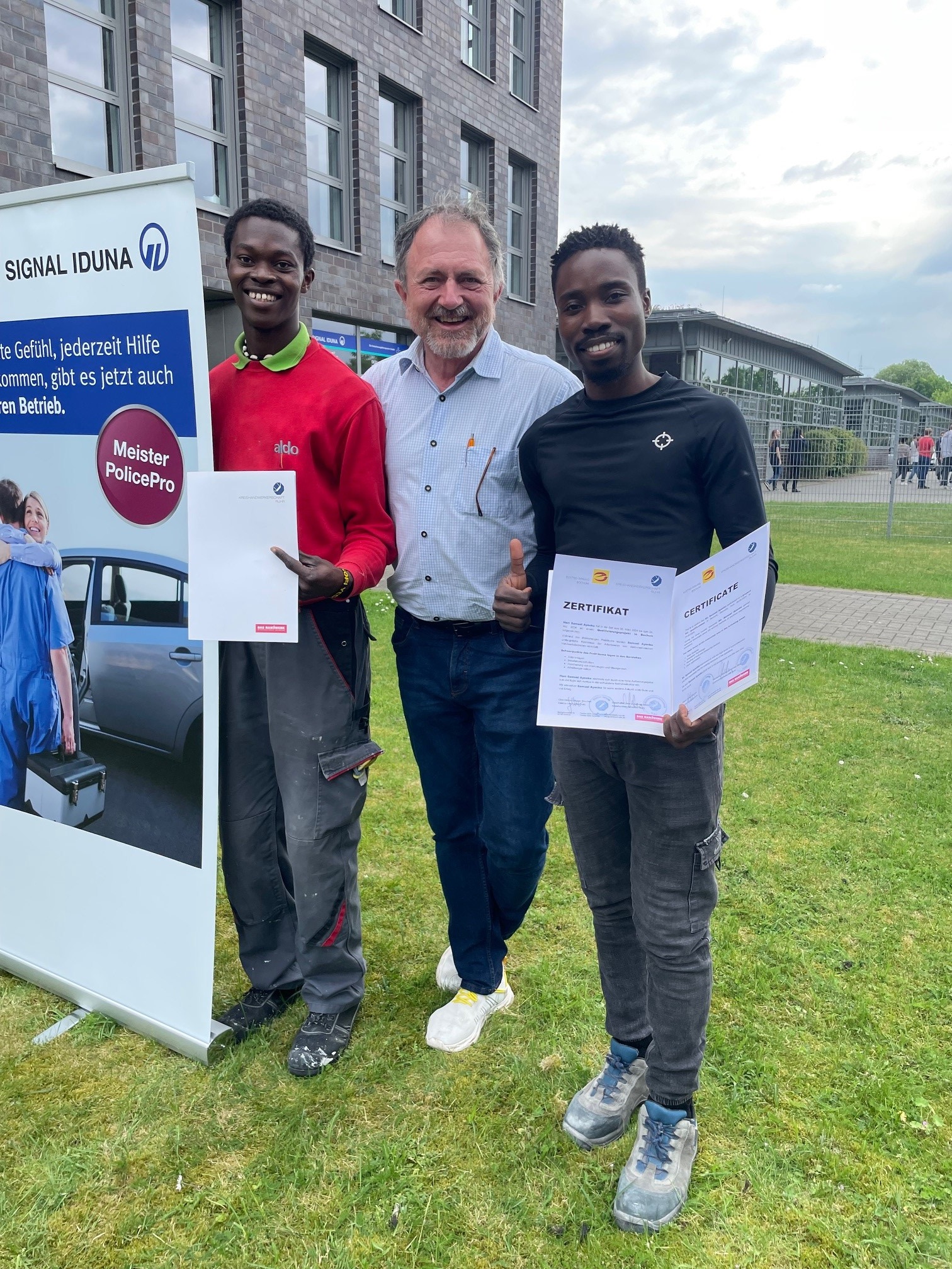 „Das Projekt ist ein voller Erfolg. Alle fünf Absolventen aus Ghana haben sich nicht nur hervorragend in die betrieblichen Strukturen und Abläufe eingebracht, sondern auch mit ihren individuellen Kenntnisse und Fertigkeiten überzeugt. Alle fünf Absolventen erhalten von ihren Praktikumsbetrieben einen Anstellungs- und/oder Ausbildungsvertrag ab Sommer 2024! Das ist gelebte und zielorientierte Gewinnung ausländischer Fachkräfte“, so der Tenor von Heiner Büscher (Obermeister Elektro-Innung Bochum), KH-Geschäftsführer Johannes Motz und Christina Philipps (Vorstandsmitglied der Elektro-Innung Bochum und zugleich Vorsitzende des Stiftungskuratorium „Von Werkstatt zu Werkstatt“)