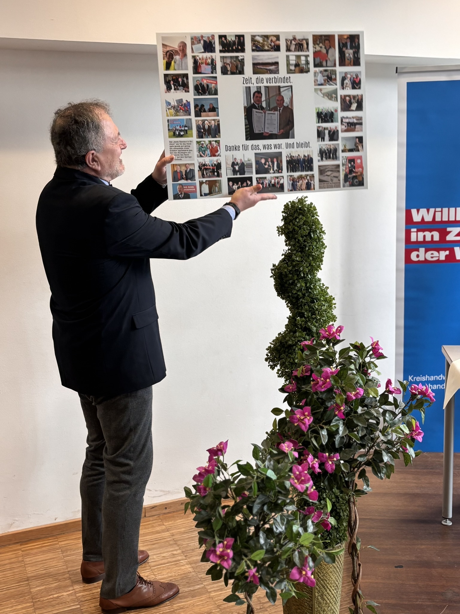 Im Anschluss an die persönlichen Ausführungen des Ehrenkreishandwerksmeister folgten Worte des Dankes von Handwerkskammer-Präsident Berthold Schröder und Buchbinder-Obermeister Maik Beckmann, der ihm als Erinnerung ein Buch mit Bildern aus 30 Jahren seines Wirkens überreichte.