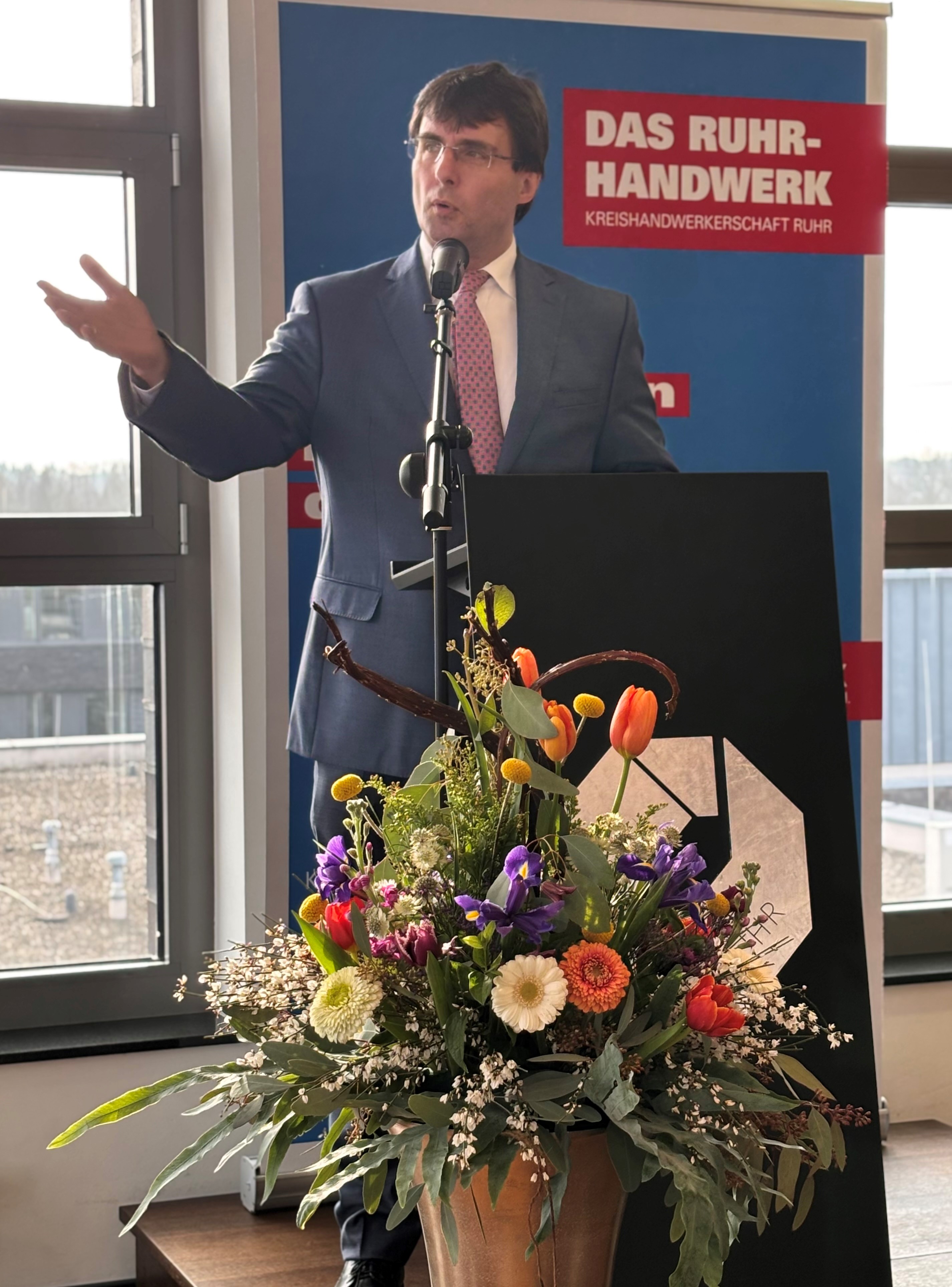 Zum tradionellen Jahresauftakt des Ruhr-Handwerks konnte die Kreishandwerkerschaft Ruhr am 06. Februar Dr. Marcus Optendrenk, Finanzminister des Landes Nordrhein-Westfalen, als Festredner begrüßen. Über 150 Gäste aus Handwerk, Innungen, Politik, Verwaltung, Bildung, Wirtschaft und Gesellschaft nutzten den Vormittag an der Springorumallee für Gespräche und Austausch.